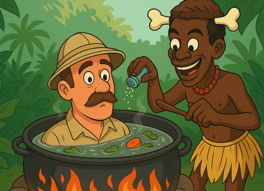 Siempre creímos que el motivo era solo alimenticio. Eso, por supuesto, alimentó toda clase de mitos y chistes: el africano con el huesito en la cabeza, condimentando al explorador de uniforme caqui, bermudas y gorro tipo capelina.