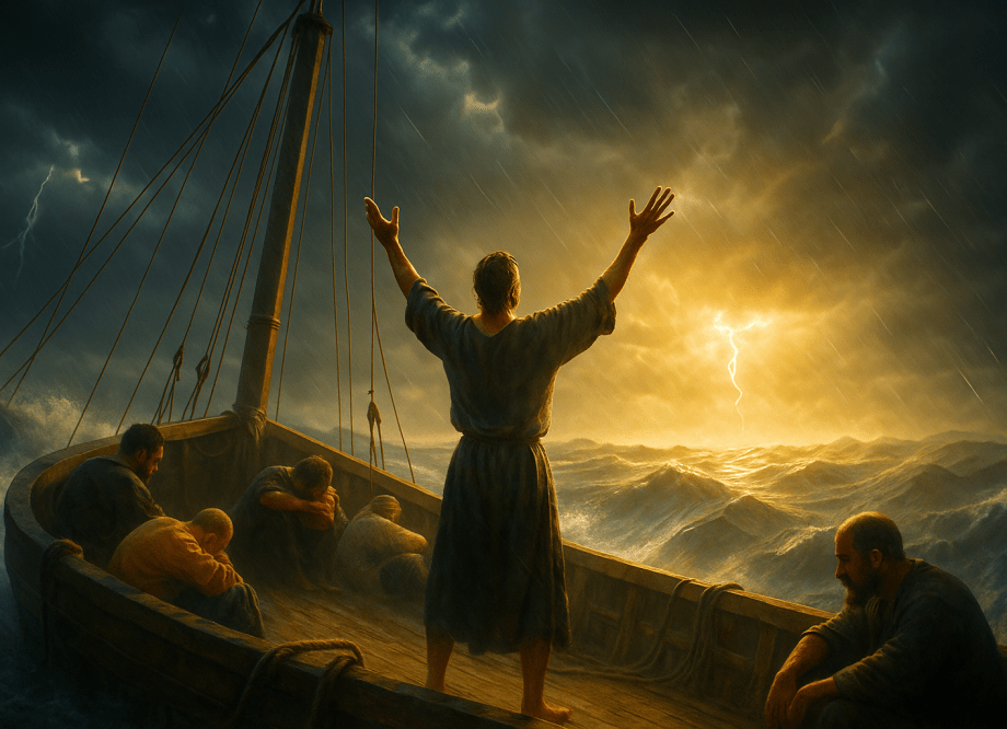 Pablo iba rumbo a Roma a ser juzgado. El viaje en barco se complicó por el clima, se levantó tormenta y eso puso en peligro a la tripulación. En un momento, Dios advirtió por medio de Pablo (o Pablo se mandó por cosa suya) que iban a estar en riesgo y era mejor no zarpar. Pero, aunque no lo creas, el centurión escolta de Pablo decidió hacerle caso al capitán de la nave y al piloto antes que al preso Pablo, fabricante de tiendas… ¿Raro, no? (Hechos 27:11)